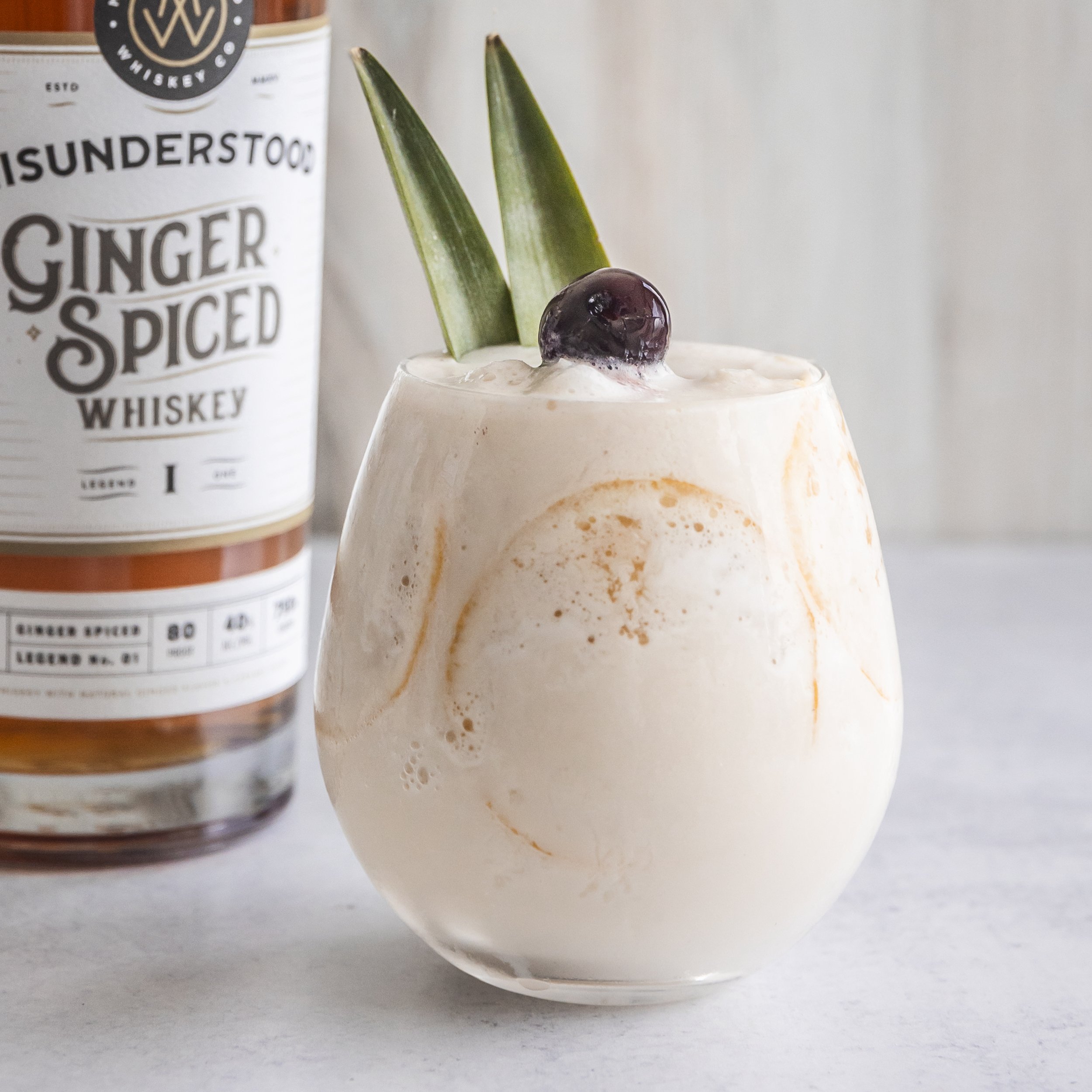 Combine all ingredients in a blender with ice. Pour into glass and garnish with pineapple wedge, cherry, and 4 Orange Wheels. May the force be with you!