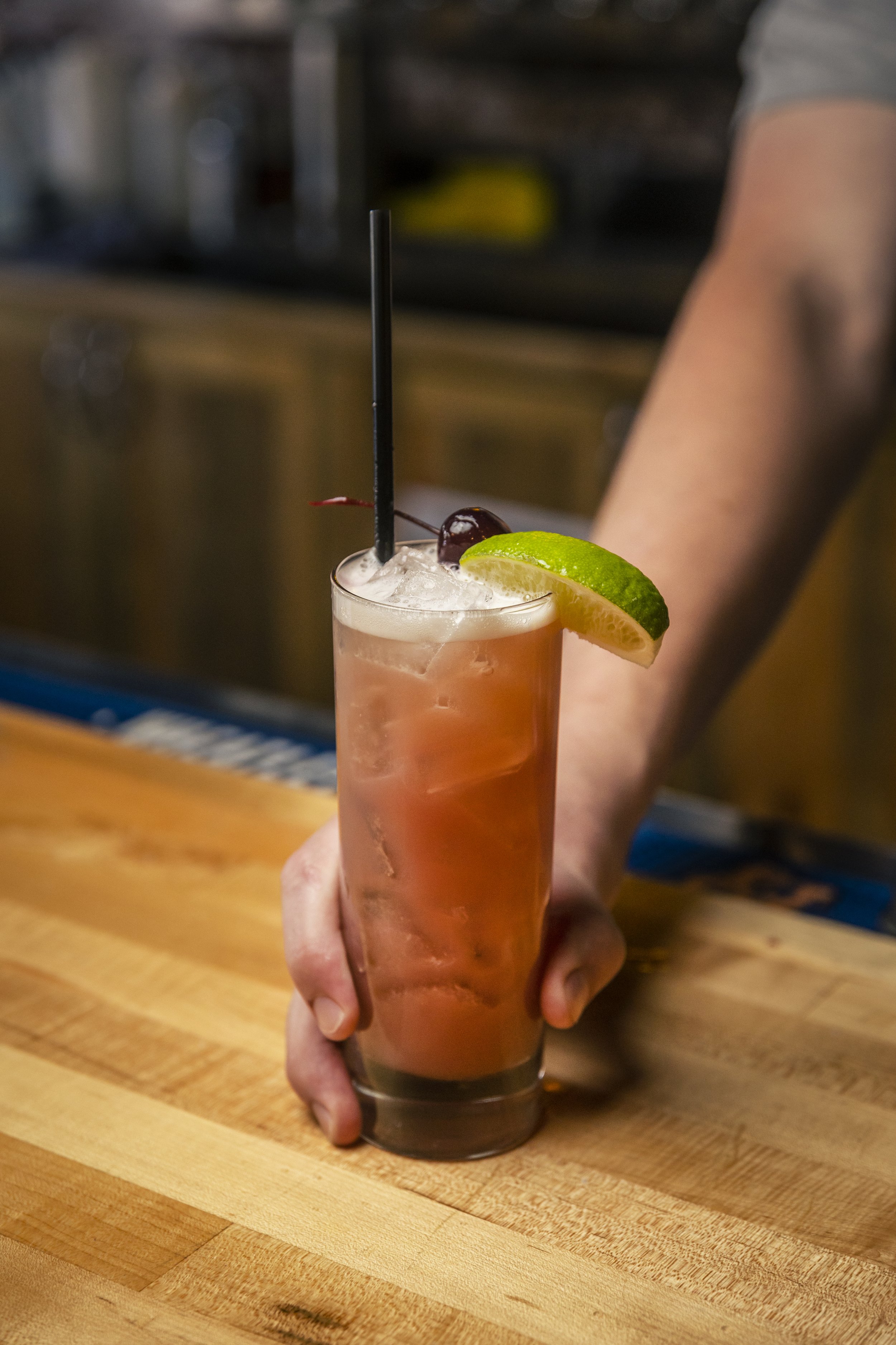Combine ingredients in a shaker with ice. Shake & strain over fresh ice. Garnish with cherry & lime.