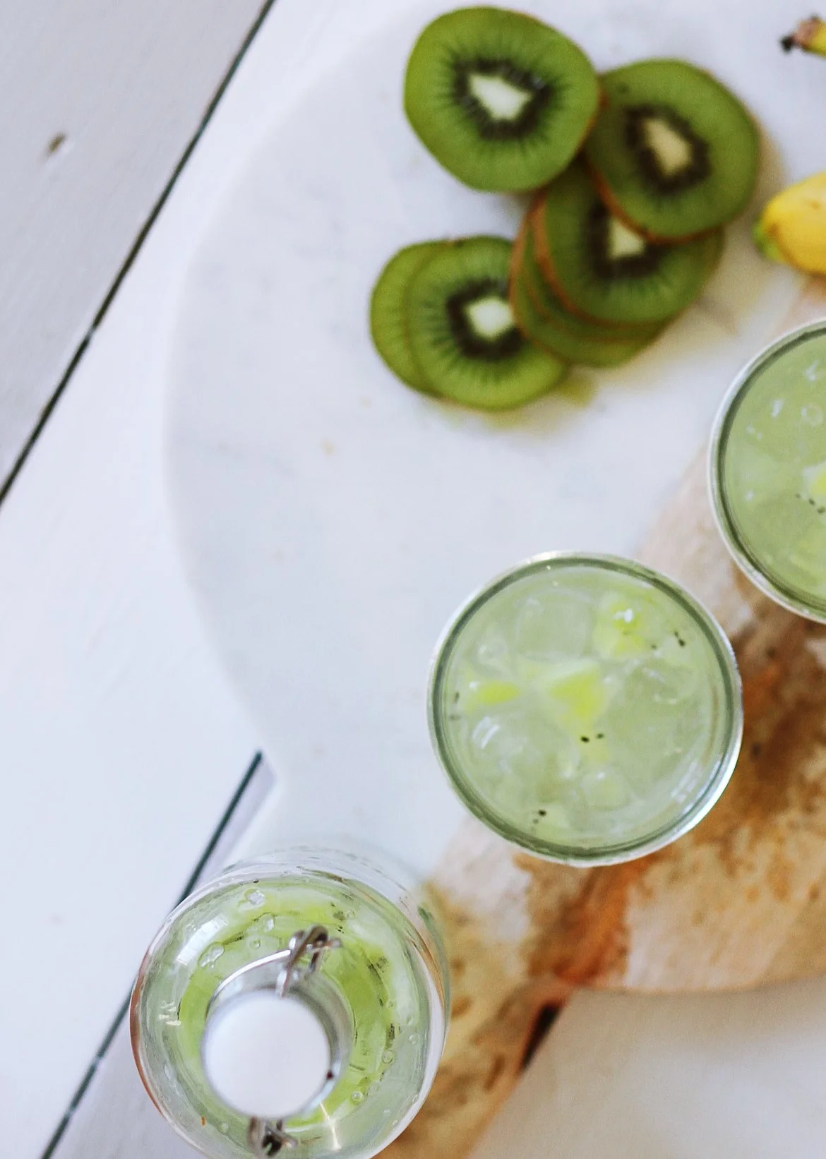 3 kiwi slices muddled (or 3/4 oz kiwi puree)