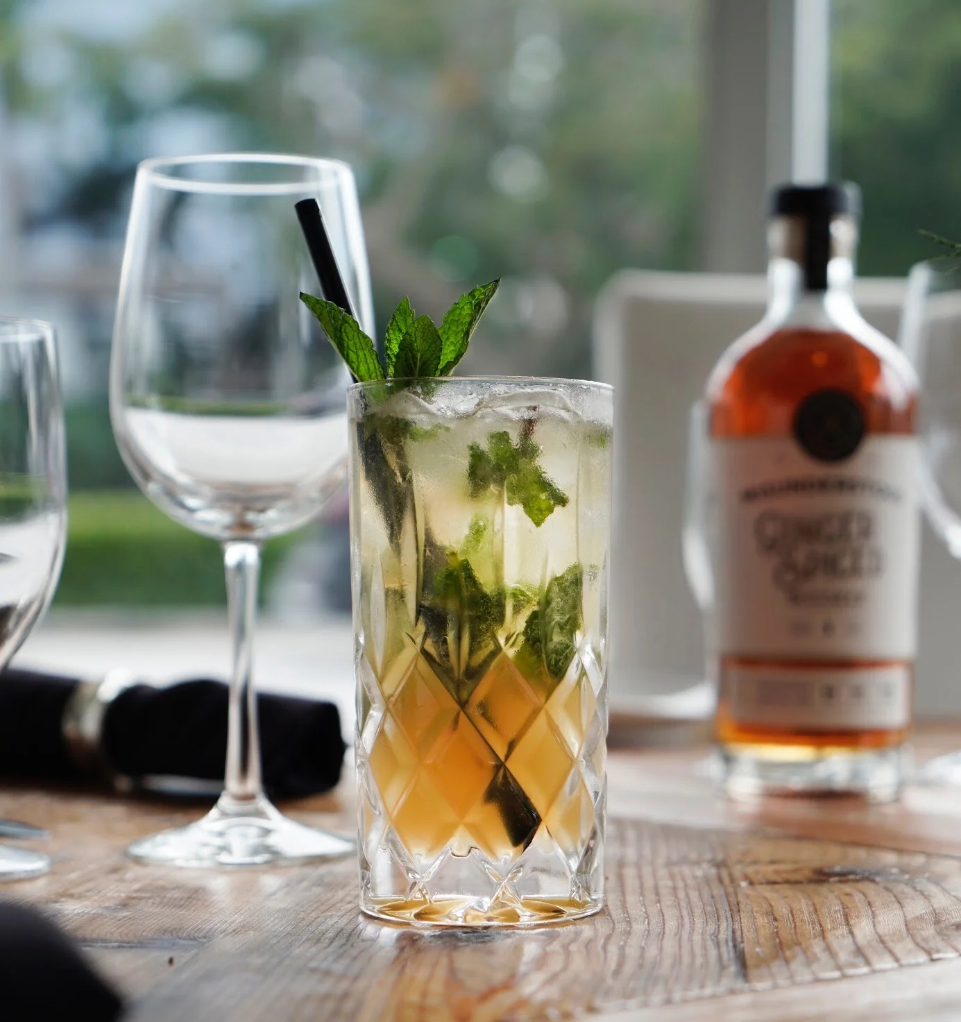 Combine all ingredients and shake with ice. Double strain over fresh ice in Collins glass. Garnish with fresh mint.