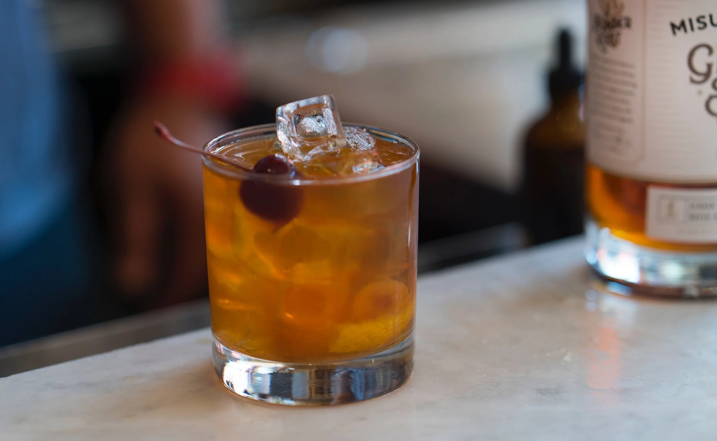 Lemon peel & bourbon cherry garnish